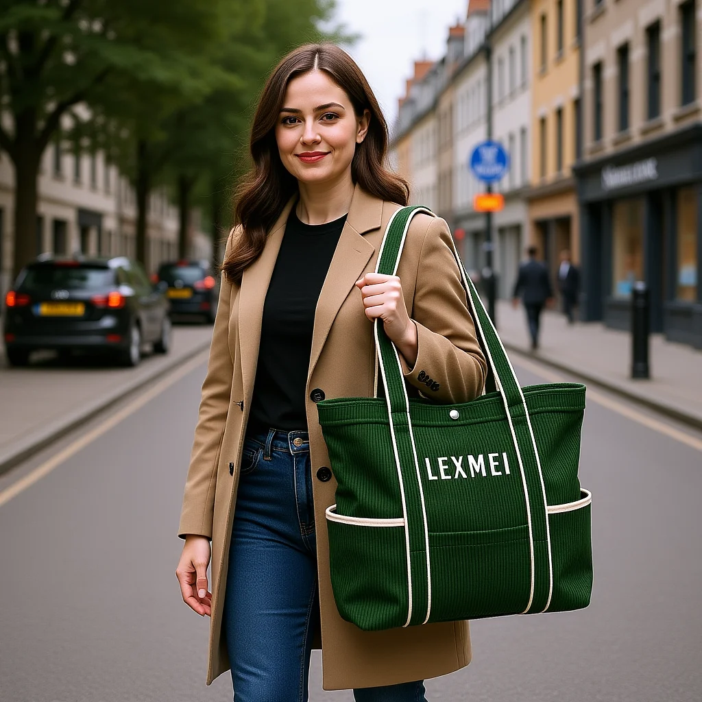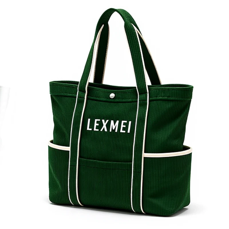 Custom logo Large Capacity Fashionable Corduroy Shoulder Bag Design Corduroy Tote Bag for Daily Shopping